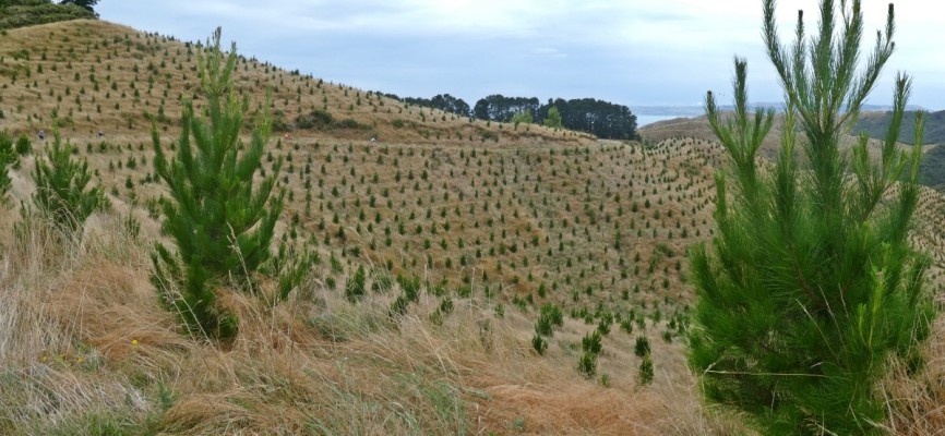 Te Au Station has become Te Au Forest, planted in 2021, and managed by PF Olsen Ltd. Paritu Road continues as a track through long grass with deep ruts which make cycling tricky. The ruts are easier to see in spring and early summer when deer and goats graze the grass, once kept short by sheep and cattle.