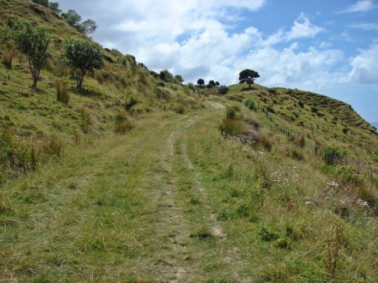The old road branches off from Wharerata Road/SH2 about 3km on the Tūranga/Gisborne side of the Wharerata hills summit. The road follows the undulating ridgeline seen on the skyline south of Te Kurī a Pāoa (Young Nicks Head) when looking south from Titirangi/Kaiti Hill.
